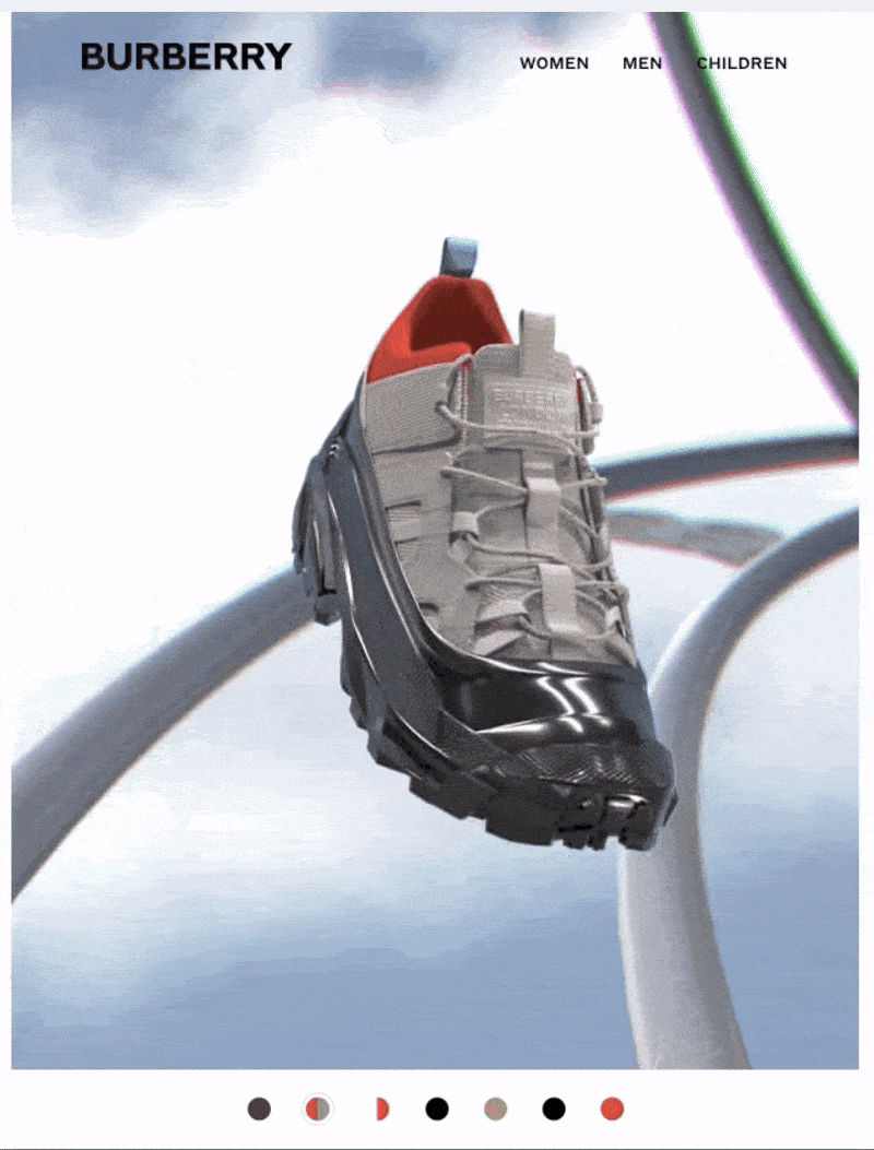 Let’s take this example from Burberry with a 3D spinning shoe. When I first saw it, the resolution seemed too good, and the animation was too smooth - this level of quality would be impossible for a GIF, as it would result in a file size of tens of megabytes.